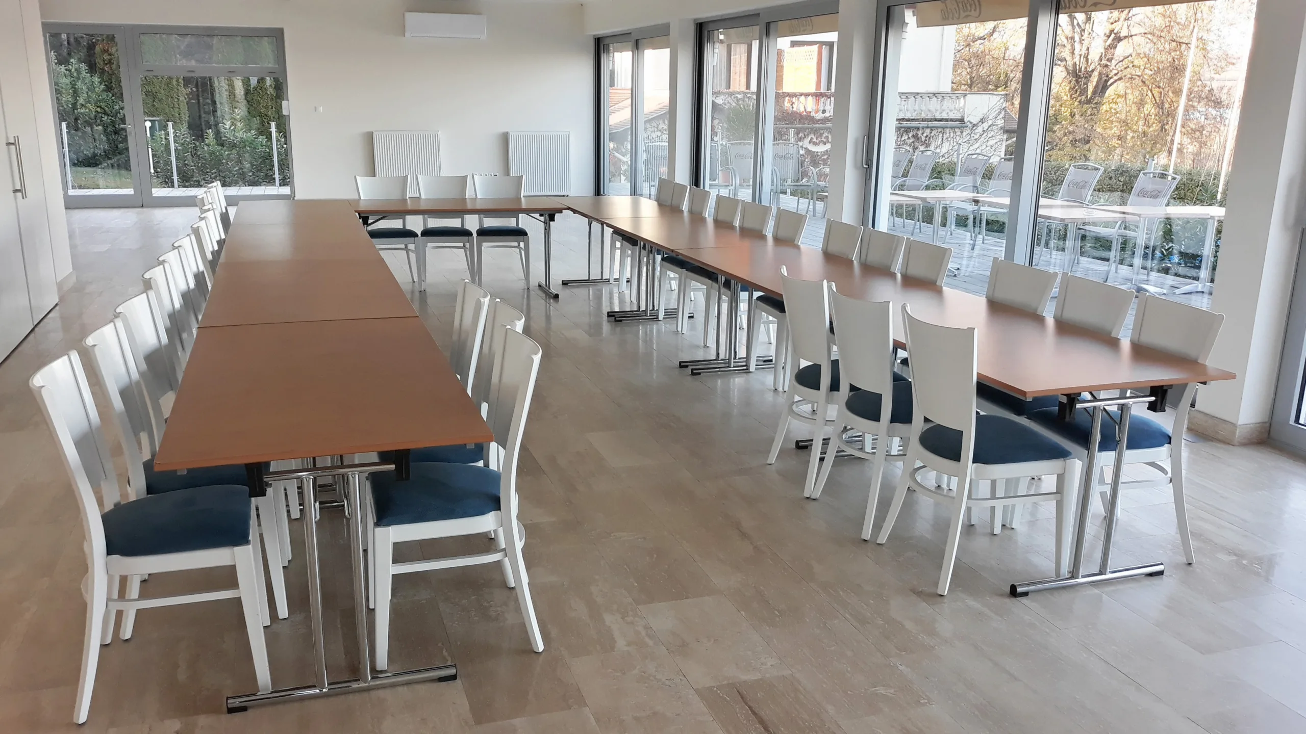 • 140 fős, 200 négyzetméteres rendezvénytermünket felszereltük modern előadóeszközökkel